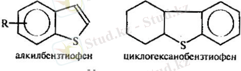 Тиофандар жағдайындағы сияқты мұнайдан табылған тиофендердің молекулаларында алкильді топтар және конденсирленген нафтенді және ароматты сақиналар болады.