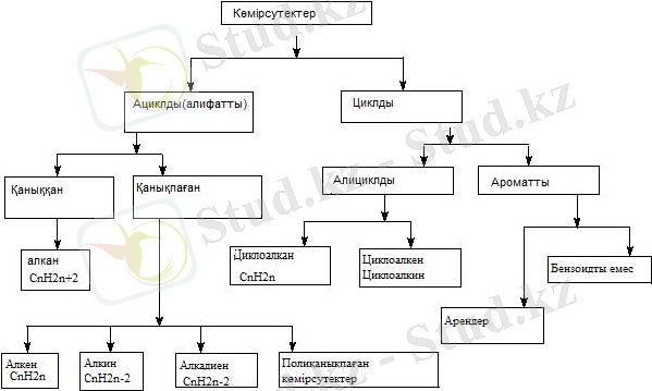 Көмірсутектер - құрамы бойынша қарапайым органикалык қосылыстар. Олардың молекулалары тек екі атомнан құралған - көміртек және сутек. Жалпы формуласы C n H m . Олар көміртек құрлымы және көміртек арасындағы атомдардың байланысының сипаты бойынша бөлінеді.