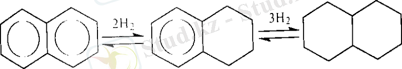 Нафталин бензолмен салыстырғанда оңай гидрленеді. Гидрлену сатылы жүреді: бірінші жылдам тетралин түзіледі, содан соң декалиннің түзілуімен гидрлену жай журеді: