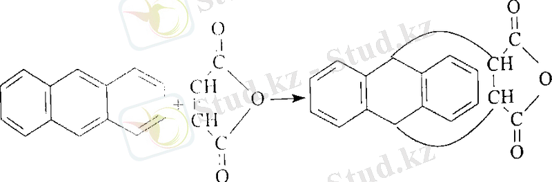 Антрацин және оның гомологтары малиналы ангидридпен қыздырған кезде аддукттар түзеді (Дильса - Альдера реакциясы) :