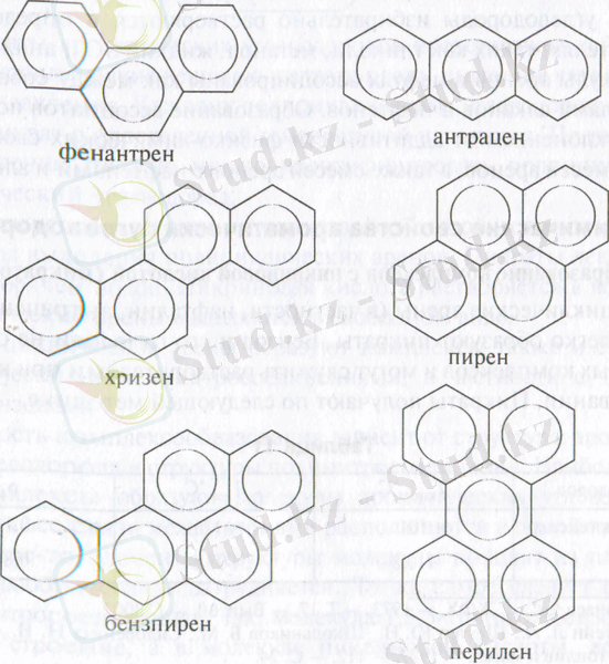 Жоғарғы фракцияларының құрамына сонымен қатар, аз мөлшердегі сақиналармен концентрленген полициклді көмірсутектердің гомологтарын жатқызуға болады: