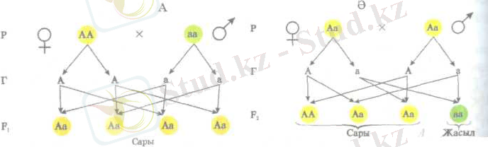бұршак тұқымының сары түсін - «А», жасыл түсін «а» деп