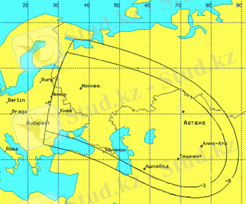 Жерсеріктің қызмет көрсету аймағы Қазақстанның, Орта Азия республикаларының, Кавказ және Орталық Ресей бөлігін қамтамасыз етеді (. 1-сурет) .