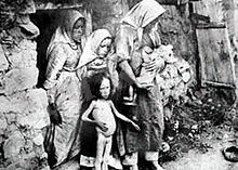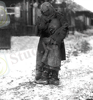 Тамақ іздеп, аштық пен суықтан қалтыраған ана мен бала. 30-шы жылдардың басы.
