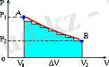 Тұрақты қысым жағдайында, газдың жұмысы геометриялық тұрғыдан түсiндiргенде 3. 1. -суретiнде келтiрiлген ( P-V ) графигiндегi V 1 АВV 2 тiк төртбұрышының ауданына дәлме-дәл тең екендiгiн оңай көруге болады. Жалпы жағдайда газ қысымы көлемге байланысты функция болып табылады. Бiрақ, газ жұмысы бұрынғысынша сандық түрде бастапқы және соңғы күйлердегi p 1 және p 2 қысымдарына тең AV 1 және AV 2 кесiндiлерiмен және P -ның V -ға байланысты графигiмен шектелген фигураның ауданына тең болады(3. 2-сурет) .