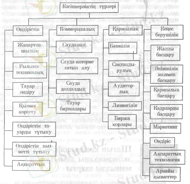 Нарық жағдайында кәсіпкерлік қызмет көп нышанда болады, оларды мына түрге бөлуге болады: