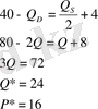 Тепе-тең баға мен тепе -тең көлемді табу үшін сұраныс пен ұсыныс функцияларын теңестіреміз: