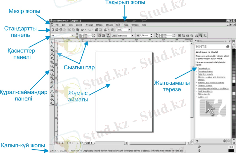 CorelDraw редакторы жұмыс терезесінің негізгі элементтері: