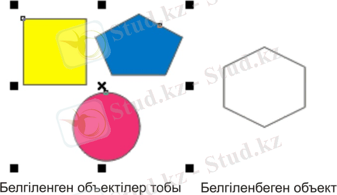 құралы жұмыс аймағындағы бір немесе бірнеше объектілерді белгілеу үшін қолданылады. Объект белгіленгенде оның айналасында 8 басқарушы маркері