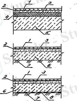 • тегістігіш қабаты -күз, қыс мезгіліне байланысты цементті-құм ерітін- дісінен немесе асфальттан жасалады. Олардың қалыңдығы жылу оқ- шаулағыш материалына байланысты қабылданады.
