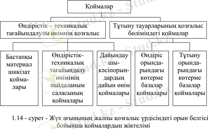 Шикізаттың алғашқы қайнар көзінен бастап дайын өнім түтынушысына дейінгі жүк ағынының жалпы қозғалыс үрдісіндегі орын белгісі бойынша қоймалардың жіктелімі қарастырамыз (1. 14-сурет) .