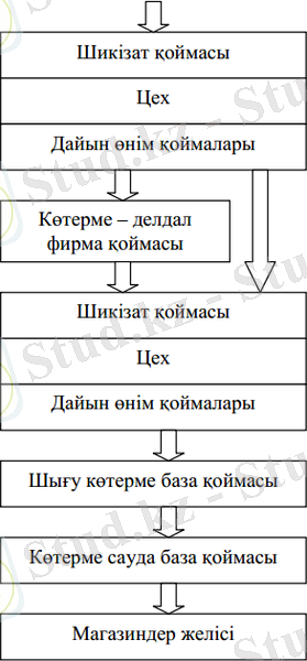 1. 15-суретте жүк ағынының әр түрлі кәсіпорындар қоймаларының тізбегі арқылы өтудің принциптік сулбасы көрсетілген.