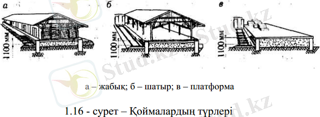 а - жабық; б - шатыр; в - платформа 1. 16 - сурет - Қоймалардың түрлері