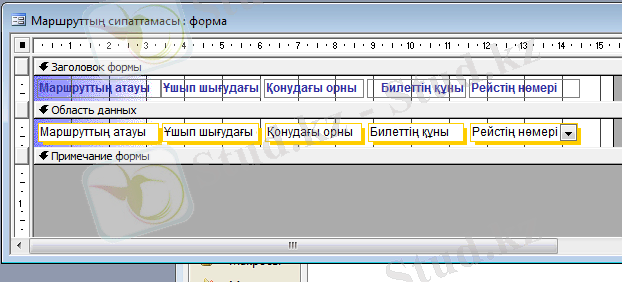Бейненің төмен жағында жазбалар саны, жазбалар бойынша көшу батырмалар орнатылған. Бұл форма кестенің басқа түрі болып табылады, онымен жұмыс істеу ыңғайлы. Конструктор режиміндегі форма 8 суретте көрсетілген.