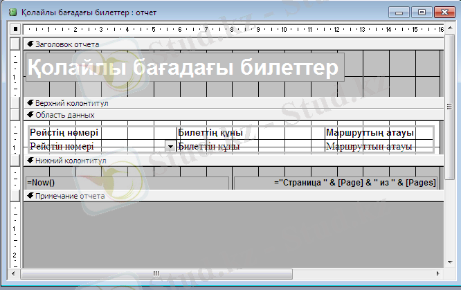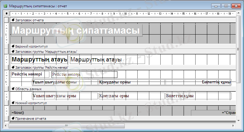 12 Сурет. Конструктор режиміндегі «маршруттың сипаттамасы» отчетінің түрі