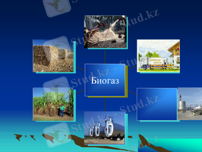 Биогаз - биомассаның ашып-қыжыған кездегі процессте бөлінетін метандық газ. Биомассаның шіруіне үш түрлі бактериалар әсер етеді. Тамақтану тізбегіндегі кейінгі бактериялар алдыңғы бактериалармен қоректеніп отырады. Бактерияның бірінші түрі - гидролиздік, екіншісі - қышқыл түзетін бактериалар, үшіншісі - метан түзетін болып есептеледі. Биогаз өндірісіне метаногендік бактериалар ғана емес аталмыш үш түріде қатысады.