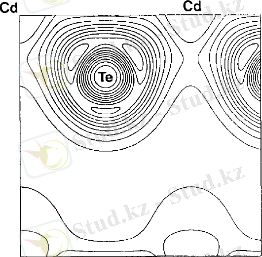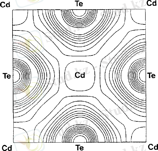 Валенттік зарядтың тығыздығының суреті(сурет-2) CdTe құрылымындағы электрондардың таралуын және атомдардың арасындағы химиялық байланыстардың табиғатын көрсетеді.