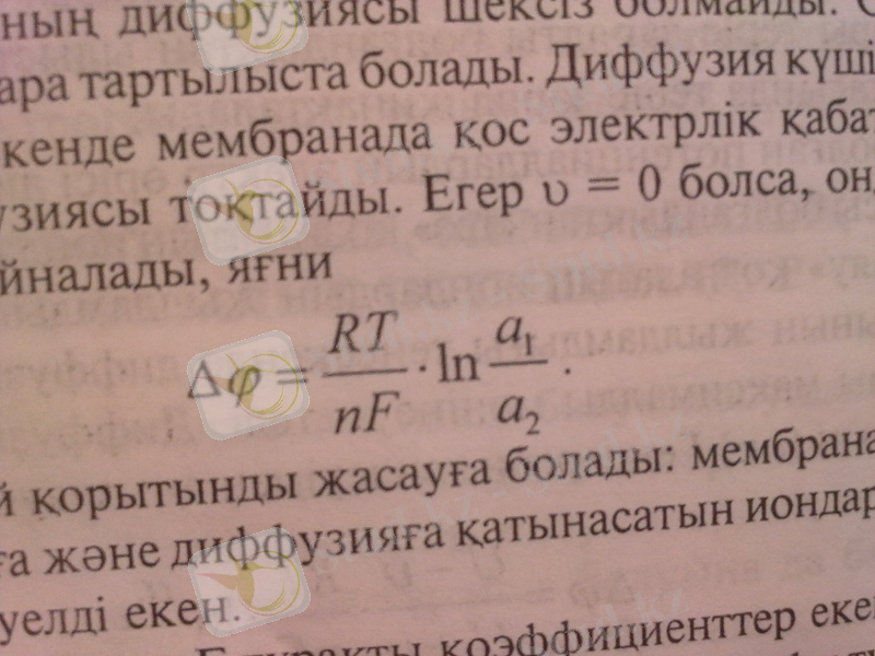 μ ί (1) =μ ί (2) немесе Δμ =RT ln α ί (1) = - z ί FΔψ