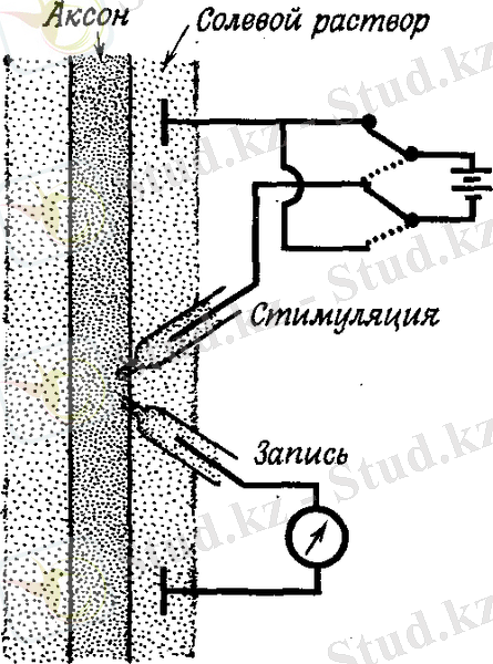 Екі микроэлементтің көмегі арқылы нерв имульсін зерттеу схемасы.