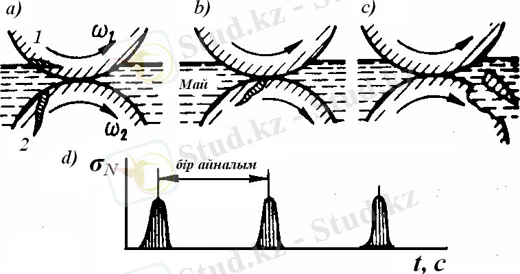деп белгілейді. Егер жанасу кернеулерінің мәні мүмкіндік жанасу кер-неулерінің мәнінен үлкен болса, бөлшектер бетінде шетінеулер пайда болады. Мысалы. тісті, червякті және т. б. берілістерде, подшип-никтерде осындай бұзылулар байқалады.
