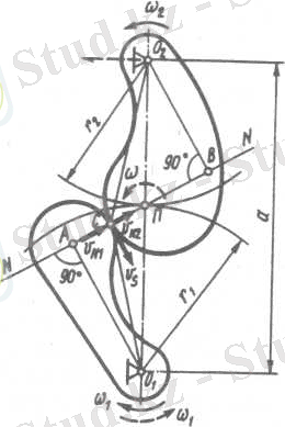 нүктесінің жылдамдық векторлары, айналу центрлерінен түйісу нүктесіне жүргізілген радиустерге перпендикуляр және олардың модульдері