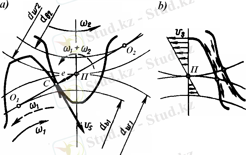 нүктесінің жылдамдық векторларын профильдің нормалі мен жанамасының бағыттарына жіктейміз; стандарт бойынша, нормальдық құраушыларын