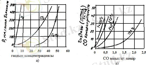 1. 1 - сурет. Әртүрлі газдардың көміртегі адсорбция изотермалары: