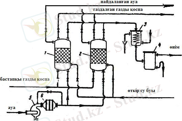 1-адсорбер; 2-шығарғыш қақпа; 3-пневмотасымалдау жүйенің жіктеу құрылғысы; 4-сепаратор; 5-конденсатор-суытқыш; 6 - тұндырғыш;