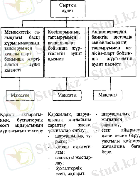 Сыртқы аудиттің мазмұнын кеңірек түсіндіру үшін төмендегі схеманы келтіреміз.