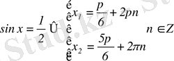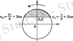 -ден үлкен немесе тең. Бұл нүктелер жиыны төмендегі суретте доға түрімен бейнеленген. Шектелген, штрихталған сегмент. Доғаның шекарасын анықтап, теңдеуді шешеміз