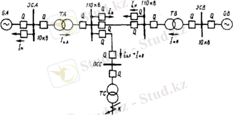 Сурет 1. 1 Электрэнергетикалық жүйе бөлігінің сұлбасы.