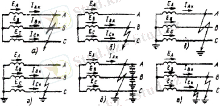 Үшфазалы қысқа тұйықталудағы векторлық диаграмма. 1. 4а-суретінде электр беріліс желісіндегі үш фазаның металдық К нүктесіндегі қысқа тұйықталуы көрсетілген.