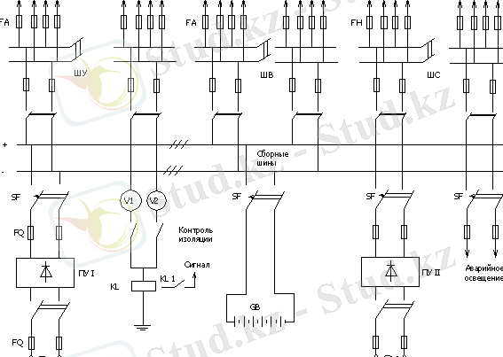Сурет 3. 1. РҚ оперативті тізбек қорек көзіның принципті сұлбасы және тұрақты оперативті токпен басқару және белгі беру сұлбасы