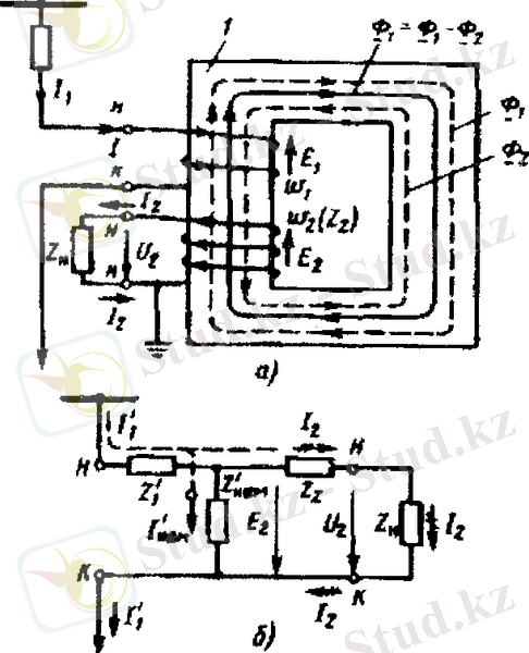 Жұмысшы немесе негізгі деп аталатын Ф т ағыны, екі ораудан да көп өтіп, екінші орауда ЭДС Е 2 - ге барады, ол екінші ораудың тұйық тізбегінде І 2 тогын жасайды. Ф т ағыны І ном тогымен І ном w 1 магниттік қозғаушы күшін құрайды. І ном І 1 тогының бөлігі болып табылады да, магниттеуші ток деп аталады. Егер І ном =0 болса, (5. 1) өрнегі келесі түрде болады: