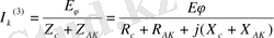Мұндағы Е ф - ЭҚК -тің фазалық жүйесі, Z c , R c , X c , Z AK , R AK , X AK - Жүйенің кедергісі және ЛЭП-тегі бүлінген аймағы.