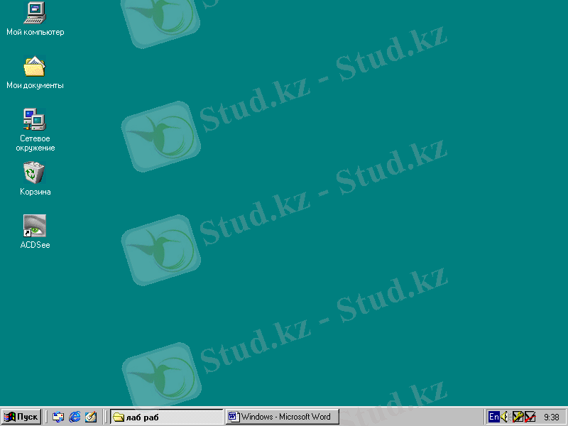 WINDOWS’98 операциялық жүйесiн жүктегеннен кейiн экранда объектiлер мен басқару элементтерi орналасқан Жұмыс үстелiнiң бетi пайда болады.