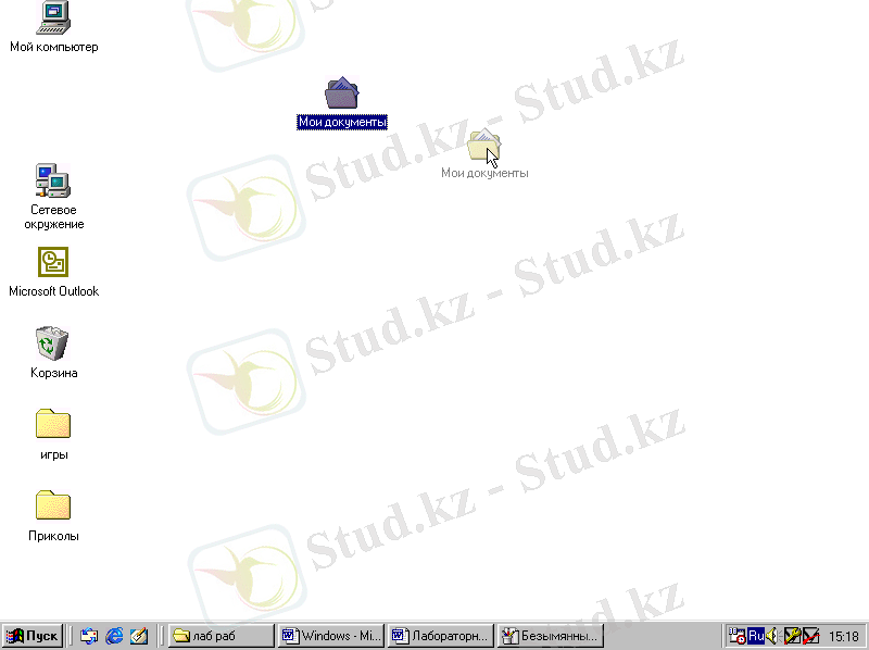 - Бумаға орналастыратын файл белгiсiне тышқан көрсеткiшiн алып барып, сүйреу арқылы қажет бумаға апарып, орналастырамыз.
