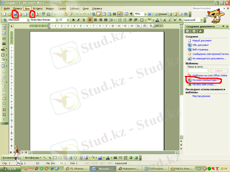 Microsoft Office Word бағдарламасында кейбір құжаттардың шаблондары сақталған. Мысалы, резюме, хаттар, есептер және т. б. Оларды іске қосу үшін Файл - Создать командасын орындаймыз да оң жақ бетте шыққан сұхбаттық терезеде «шаблоны» бөлімінде «на моем компьютере» батырмасын шерткенде құжаттар түрлері алдымызға шығады. Олардың ішінен белгілі бір құжат үшін шеберді қолданып өзіміздің қалауымызға қарай құжаттың түр-сипатын анықтаймыз. Содан соң құжаттың мазмұнын енгіземіз.