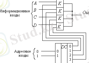 Енді мультиплексордың шығысына тек бір кіріс сигналын қосуға болатынын еске түсірейік. ТТЛ схемасындағыдай электронды кілттерді екілік кодпен басқару үшін мультиплексор құрамына дешифратор кірістіріледі. Мұндай мультиплексордың схемасы 6-суретте көрсетілген.