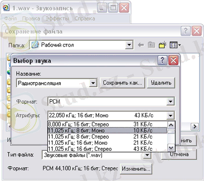 Әдетте 11, 22 немесе 44 кГц өлшемдерінің бірін таңдайды. Бұлар төмен, орташа және жоғары сапалар. Егер музыкалық аспапты немесе әнші дауысын жазу қажет болса ең жоғарғы сапа қолданылады, ол 44кГц. Ал егер дыбыстық файлдың төменгі өлшемі қажет болса орташа немесе төменгі сапаны таңдаймыз, олар 11 кГц және 22 кГц.