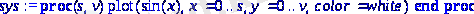 plot(sin(x), x=0. . s, y=0. . v, color=white) ;