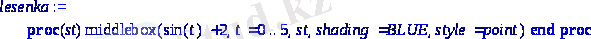 middlebox(sin(t) +2, t=0. . 5, st, shading=BLUE, style = point ) ;