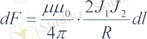 токтар жүріп тұрған бір-біріне параллель R арақашықтықтағы шексіз ұзын түзу екі өткізгіштің өзара әсер күшін мына