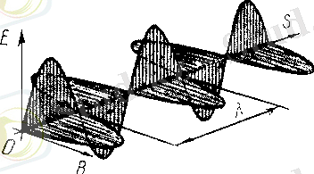 векторларының OZ осінде жатқан әр түрлі кеңістік нүктелеріндегі берілген уақыт мезетіндегі мәндері кескінделген. Су бетінде пайда болатын механикалық толқындар жағдайындағыдай, мұнда ортаның ешбір жалы немесе сайы деген болмайды.