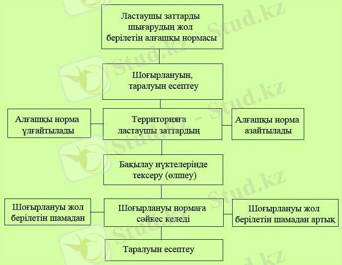 Әдетте ластаушы заттардың шоғырлану дәрежесі бақылау пункттерінде өлшенеді. Егер көрсеткіш нормадан артық болса, ластаушыларға норма азайтылып, шоғырлану дәрежесі қайта есептеледі. Керісінше, бақылау көрсеткіші төмен болса, норматив жоғарылатылуы мүмкін. Бұл процестерді төмендегі блок - сызбадан көруімізге болады (сурет3) .