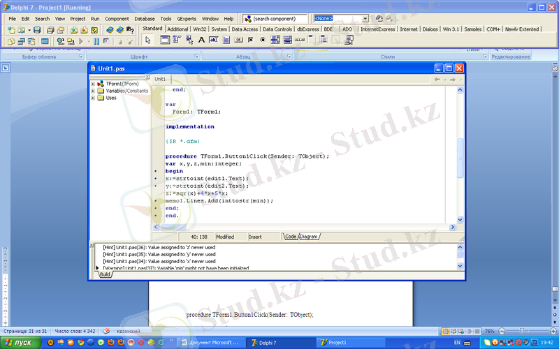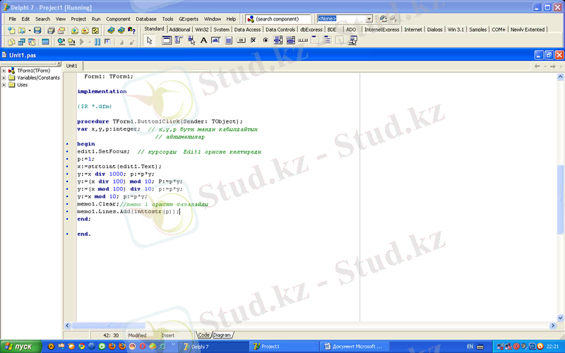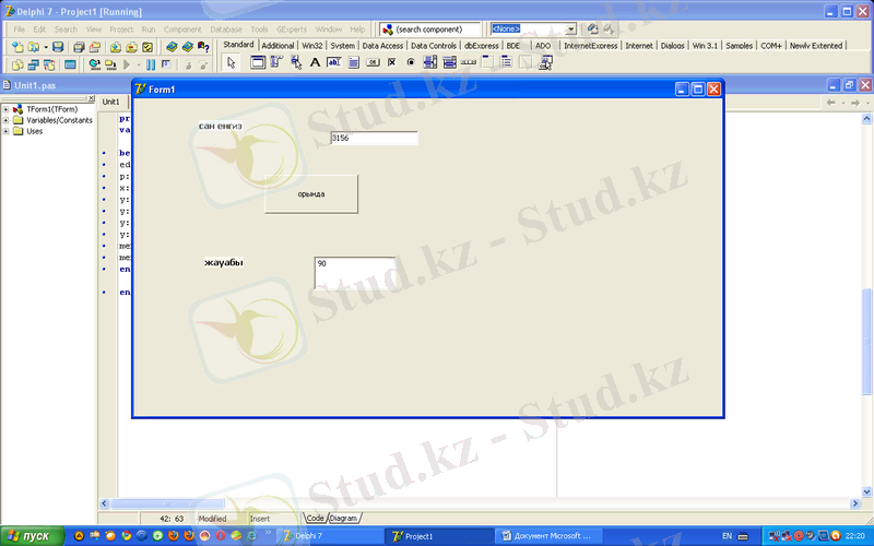 Delphi ортасында Windows-қосымшалар құру және алгоритмдік жобалау: дипломдық жұмыс