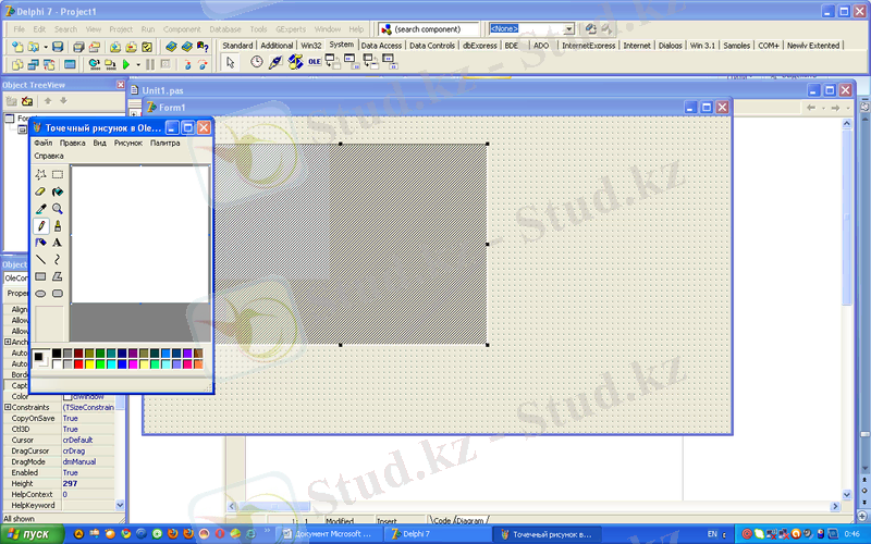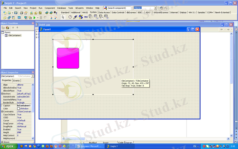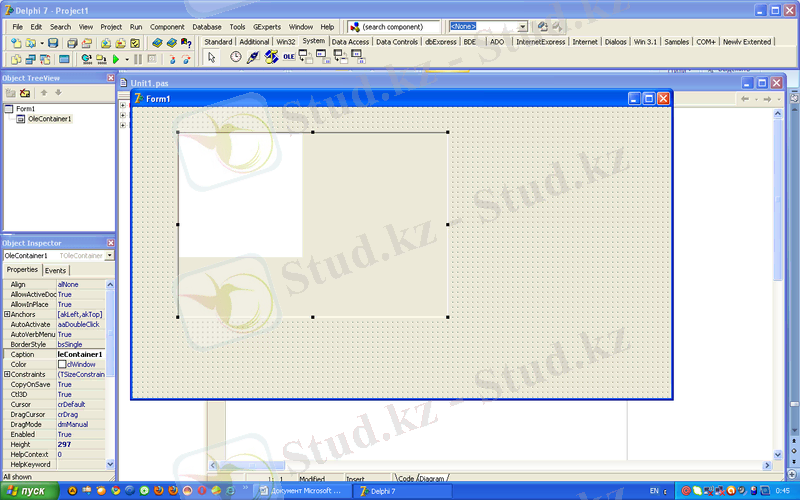- Жаңа форма бетін ашып, онда System бетінде орналасқан OLeContainer1 компонентін орналастыру. (1-сурет)