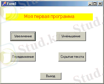 - Button1 объектісінің Caption қасиеті үшін"Увеличение" мәнін енгізіңіз.