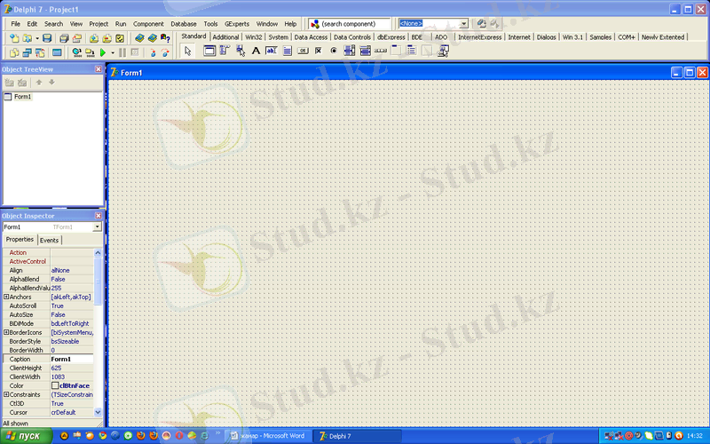 - Delphi7 программалау ортасын іске қосыңыз:Пуск/Программы/Borland Delphi7/Delphi7