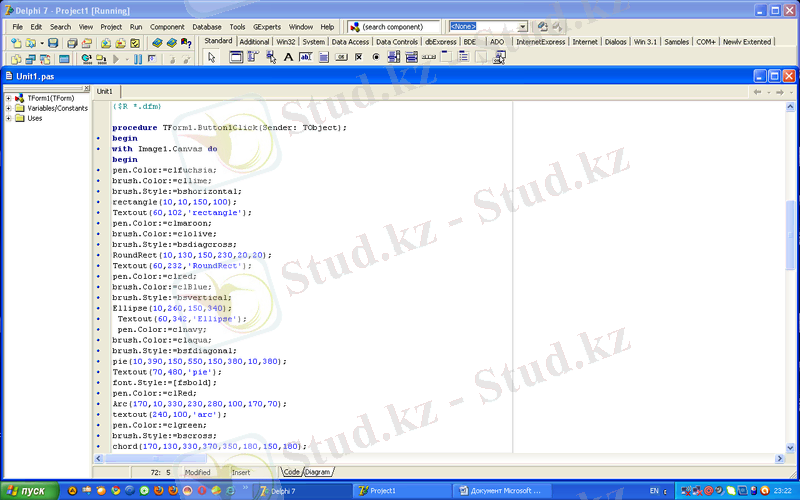 Delphi-де GUI компоненттері, графика, мәзірлер және ерекше жағдайларды өңдеу: практикалық есеп